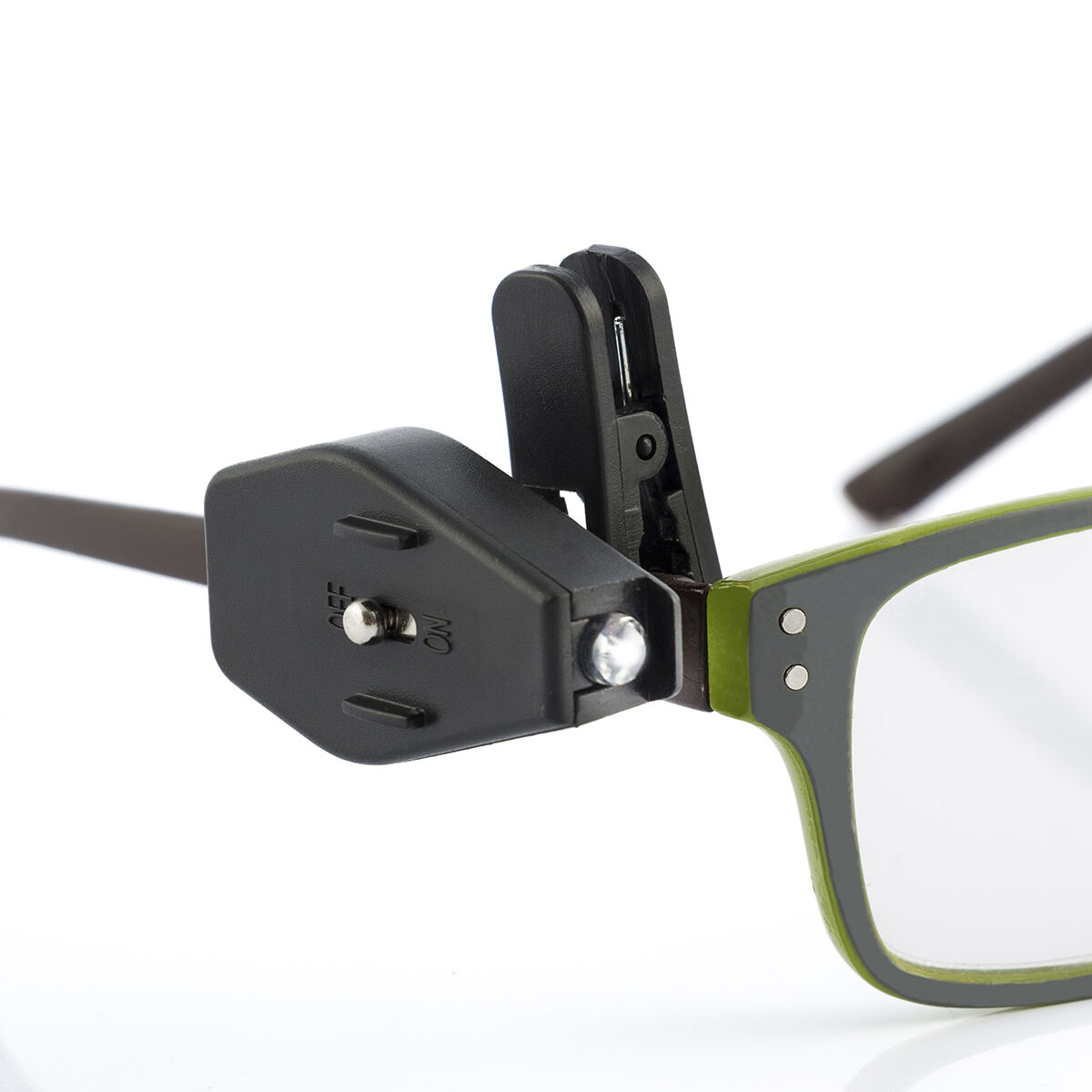 Enostavno se pritrdi na okvir očal in se obrača za 360º. Mala prenosna lučka je zelo priročna in koristna pri branju, natančnih “naredi sam” delih, itn.